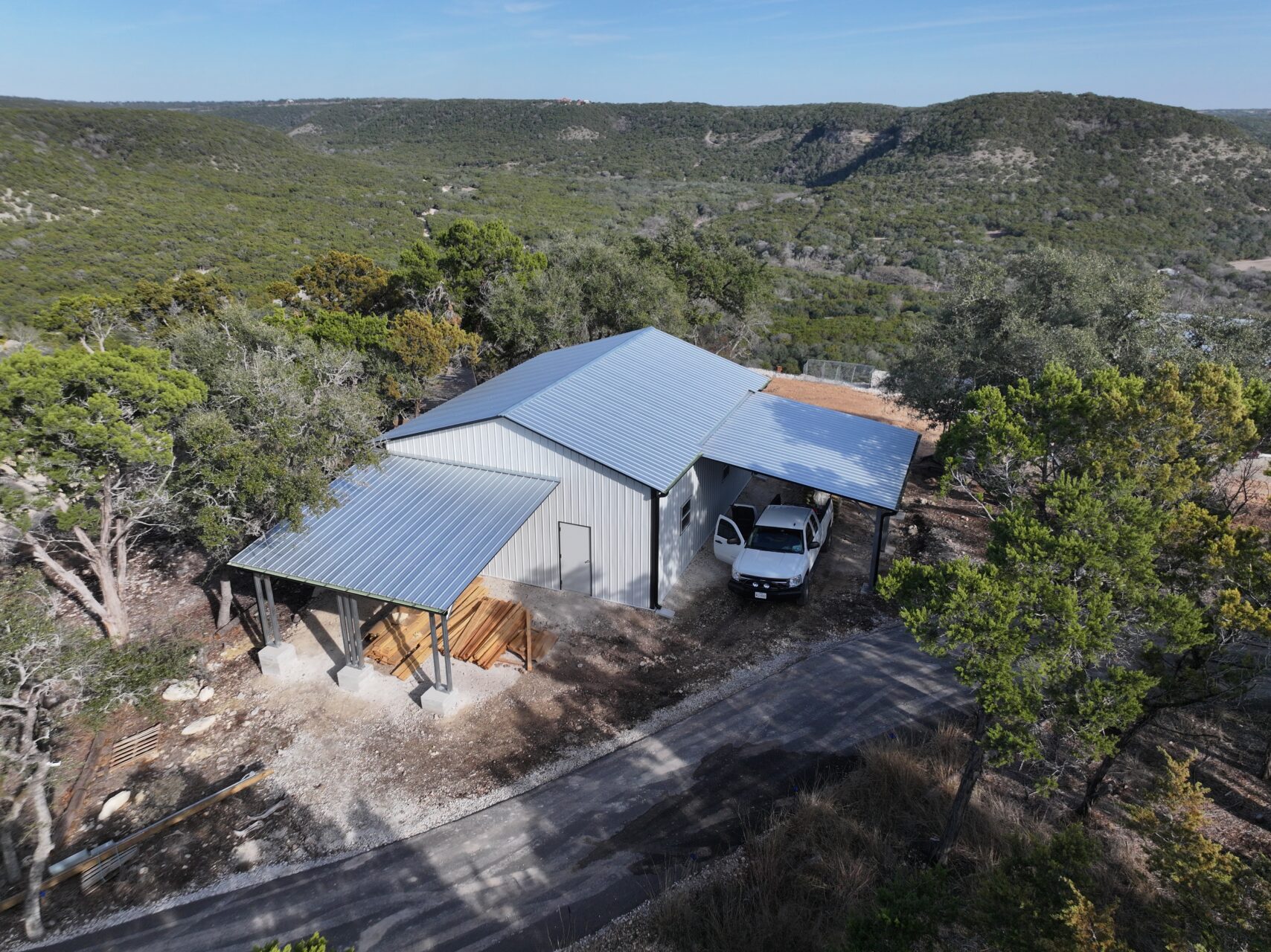 Pack, check out this 28×35 hilltop metal storage in Canyon Lake, Texas!