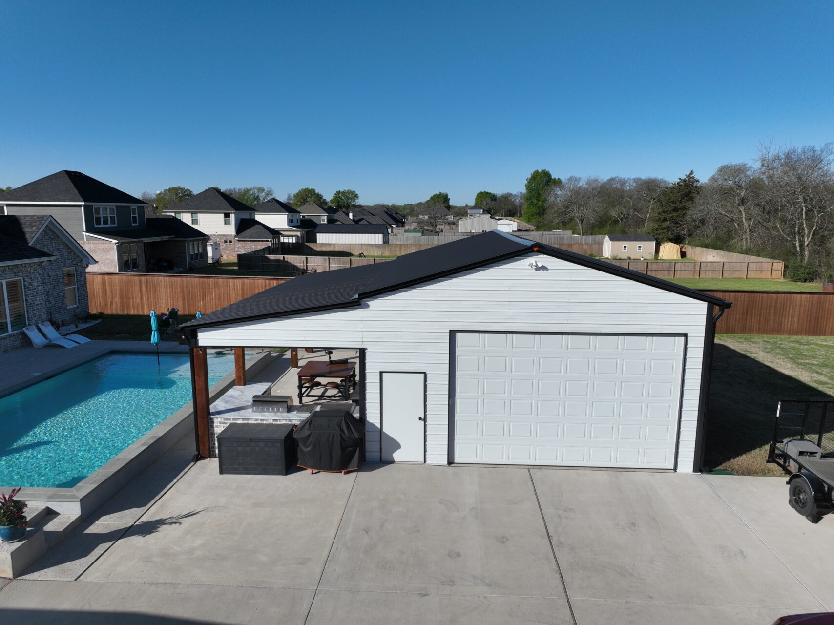 24x34 Poolside Metal Shop Storage in Flint, TX.
