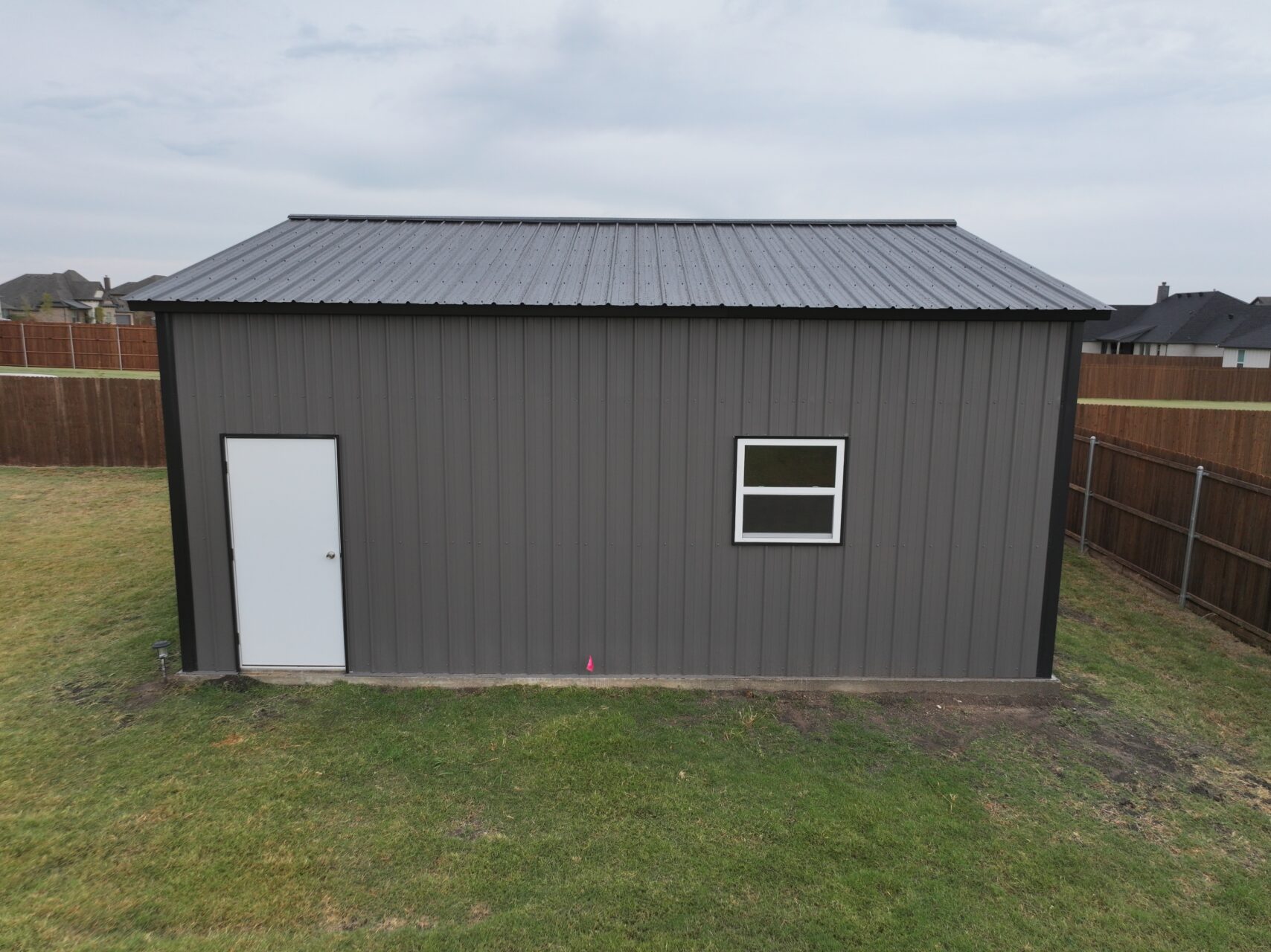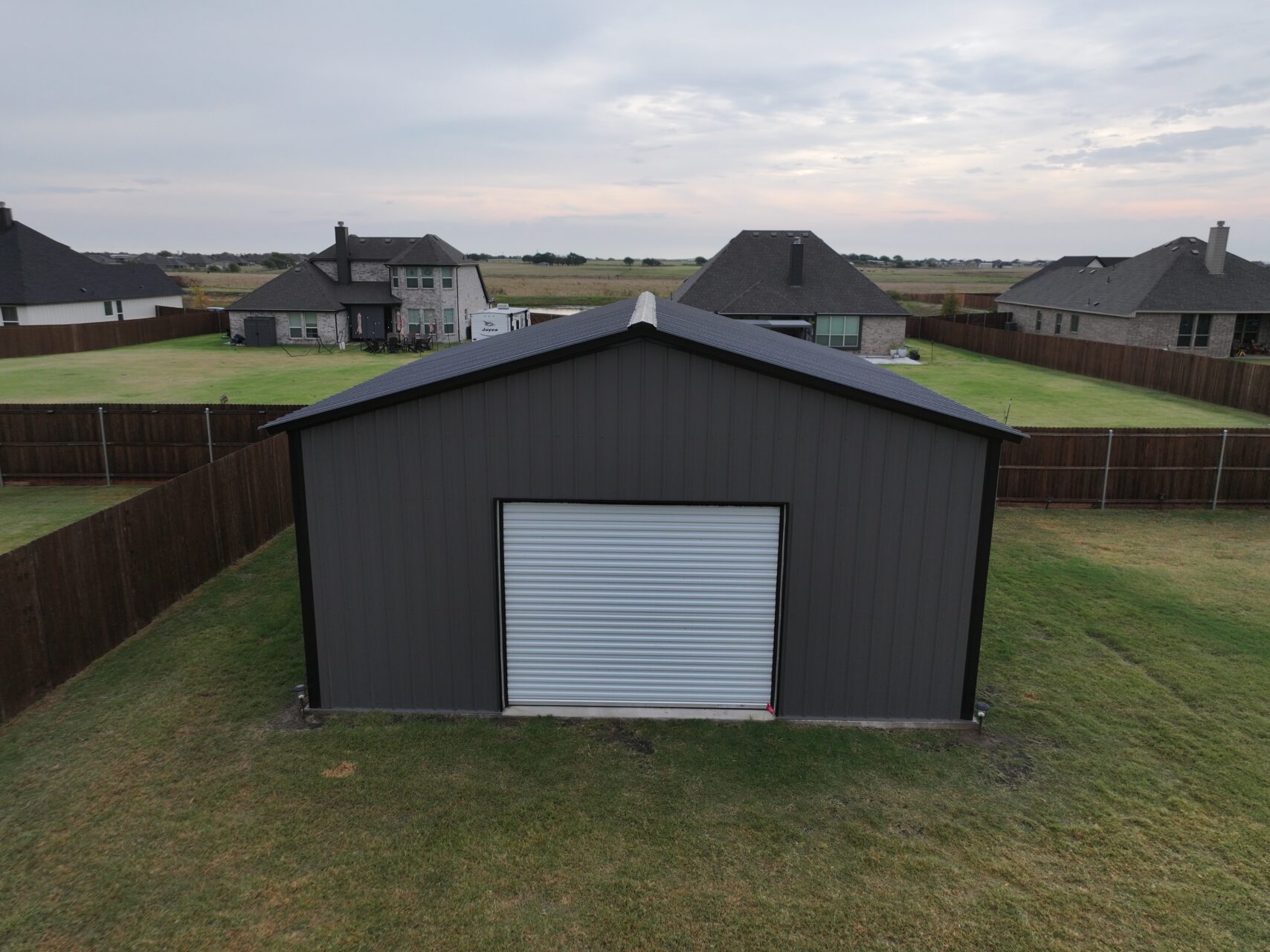 Pack, check out this 24×25 black and grey tubular metal building in Godley, Texas!
